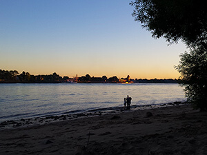 Wichtig! Manchmal wirkt die Elbe so schmal (gerade am Falkensteiner Ufer), dass man meinen könnte, zu einer der Elbinseln schwimmen zu können. Doch derartigen Leichtsinn hat schon so mancher im Elbstrom mit dem Leben bezahlt (auch mit dem Paddelboot), denn die starke Strömung in der Fahrrinne der Elbe ist viel stärker, als man ahnen kann.